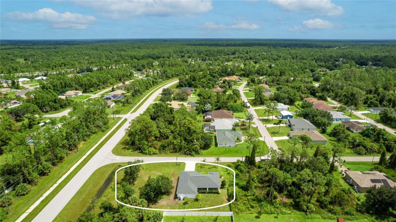 One or more photo(s) has been virtually staged. Set on a rare .51-acre corner lot, this updated 3 bedroom, 2 bathroom home offers just over 1,700 sq ft of move-in ready living with plenty of space to enjoy inside and out. The oversized lot provides privacy, mature oak trees, and fruit trees including peach, banana, and strawberry guava, along with a Moringa tree, all supported by an updated irrigation system with new sprinkler heads. Inside, cathedral and tray ceilings, fresh baseboards, and abundant natural light highlight the thoughtfully designed split floor plan. The central kitchen features refreshed cabinetry, counters, and a pantry, opening seamlessly to both the living and family rooms. The private primary suite includes dual closets, one a walk-in with built-in shelving, and a remodeled ensuite bath with a beautifully tiled walk-in shower. Two additional bedrooms also offer walk-in closets, and the second bathroom has been updated with modern finishes. French doors in multiple rooms lead to an expansive screened lanai with concrete columns and ceiling fans, creating a perfect retreat for year-round outdoor living. Additional features include porcelain tile flooring, a laundry room, and ceiling fans in every room. Major improvements include a new roof in 2023 and a new AC in 2022, giving added peace of mind. Conveniently located near schools, shopping, dining, Myakkahatchee Environmental Park, the North Port Aquatic Center, Charlotte Sports Park, and a short drive to Gulf beaches. **THIS PROPERTY QUALIFIES FOR A 1% LENDER INCENTIVE IF USING PREFERRED LENDER. INQUIRE FOR MORE DETAILS.**