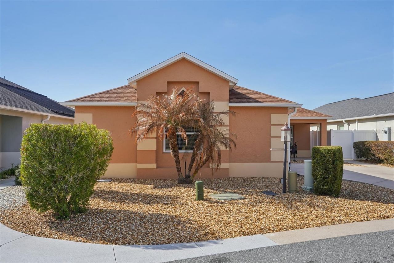 One or more photo(s) has been virtually staged. Welcome home to your own slice of sunshine in the Village of Pine Ridge in The Villages-where every day feels like a vacation! This beautifully FURNISHED 3BR/2BA Courtyard Villa with a 2-CAR GARAGE offers 1,617 sq. ft. of easy, stylish living in a location that keeps you close to everything you love.And then... there's the courtyard!!!Step through the doors and into what truly feels like a private resort. The HUGE BIRD-CAGED LANAI creates an expansive, enclosed outdoor haven designed for year-round enjoyment. Imagine morning coffee with the soft sound of your tranquil FOUNTAIN, lazy afternoons under the RETRACTABLE AWNING with just the right mix of sun and shade, and evenings soaking in your luxurious 6-SEAT HOT TUB under the Florida stars. Whether you're hosting friends for laughter-filled gatherings or savoring peaceful, quiet moments, this outdoor paradise wraps you in relaxation and privacy.Inside, the home is just as inviting. FRESH PAINT THROUGHOUT the interior, exterior, and lanai gives everything a crisp, bright feel. Beautiful PORCELAIN TILE in the kitchen, great room, and both bathrooms adds elegance and durability. A PAINTED DRIVEWAY enhances curb appeal and a Yellowblue EcoTech attic ventilation system helps keep you cool and comfortable while keeping utility bills pleasantly low.Perfectly located near Colony Plaza, Colony Regional Rec Center, and just a quick golf cart ride to Lake Sumter Landing and Brownwood Paddock Square, you'll have dining, shopping, entertainment, and recreation at your fingertips-yet still come home to your own peaceful retreat.If you've been dreaming of an outdoor oasis with the perfect blend of comfort, convenience, and carefree Florida living... this is it. Roof, HVAC & HWH 2015. Seller offering a HOME WARRANTY at closing for peace of mind. Bond Balance: $12,485.97