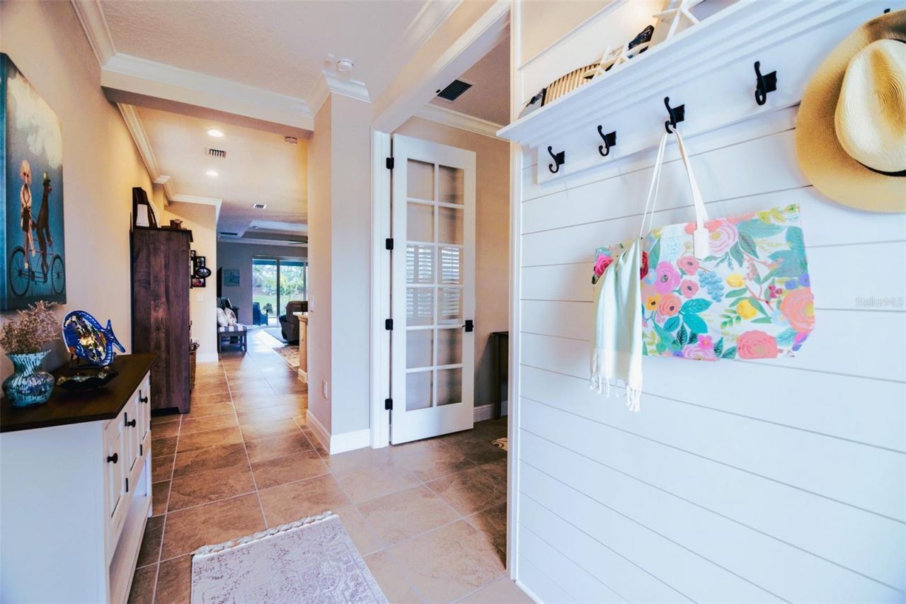 Step into resort-style living with this meticulously upgraded Fresh Spring model by Neal Homes, nestled in the gated Grand Palm community in Venice, Florida. Better than new, this 3-bedroom, 2-bath plus den home combines timeless design with functional upgrades that make everyday living easy and elegant. Inside, discover an open floor plan filled with natural light, enhanced by coffered ceilings and crown molding in primary bedroom and living area, plantation shutters, and 8-foot doors. The chef's kitchen shines with quartz countertops, solid wood soft-close cabinetry, farmhouse sink, tile backsplash, and accent lighting above and below the cabinets. The primary suite features a walk-in closet with custom built-ins, hand made mirrors and a spa-like bath with dual sinks and walk-in shower. Two guest rooms share a full bath with dual sinks, and the den with French doors is ideal for that home office or hobby space. Enjoy Florida evenings on the extended screened paver lanai with Kevlar hurricane screens and peacefull landscaped views. Added upgrades include impact-rated windows and doors, ship-lap entryway, epoxy-finished garage floor, Safe Rack ceiling storage in garage, additional cabinets in laundry room, water softener, RO drinking water and ice maker, wired security, and more! Residents of Grand Palm can enjoy 28 miles of nature trails, resort and lap pools, splash park, Adventure Lake, which is kayak-friendly, pickeball, tennis, and two dog parks. HOA fees include lawn care and community amenities, making Florida living simple. Located just minutes from Venice's historic downtown, Gulf beaches, CoolToday park and the new Wellen Park downtown, this home also offers easy access to I-75 and Tamiami Trail. Move-in ready, beautifully maintained, and never affected by storms or flooding - Make this your Florida home for living at its best!