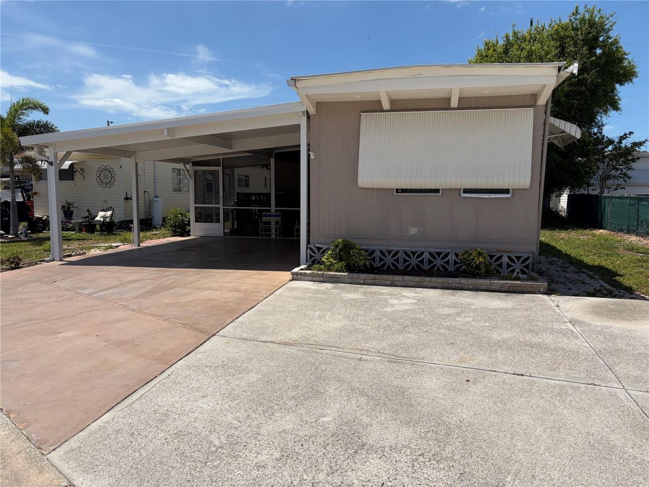 This property offers two bedrooms and 1.5 bathrooms within 915 square feet of living space if equipped with heating and air conditioning (2021). A third room in the house can be used as a bedroom, den, or office. The home presents an excellent opportunity for renovation, with abundant possibilities for creative updates. Recent improvements include a new carport and a screened-in porch. The washer and dryer are conveniently located inside the residence, and a functional outdoor shower is also available.Tri-par Estates is a 55+ community that provides a wealth of amenities: enjoy a heated and cooled large pool for year-round swimming, a brand-new spa, tiki hut, pickleball courts, fitness center, shuffleboard, miniature golf, horseshoes, and various recreation hall rooms equipped with ping-pong, billiards, card tables, a kitchenette, sewing areas, and more. The expansive clubhouse regularly hosts dinners, dances, and other events.Situated only minutes from downtown Sarasota, you'll have easy access to marinas, shopping, restaurants, museums, the world-renowned Siesta Key and Lido Key beaches, and Sarasota airport.In this special park and recreation district, residents own their land directly, with no separate HOA fees-an annual fee of $1,648 is included in your property taxes. Internet and TV included in the annual fee This is also a golf cart-friendly community with optional RV or boat storage when available. Don't miss the opportunity to join this lively, well-established neighborhood in paradise.