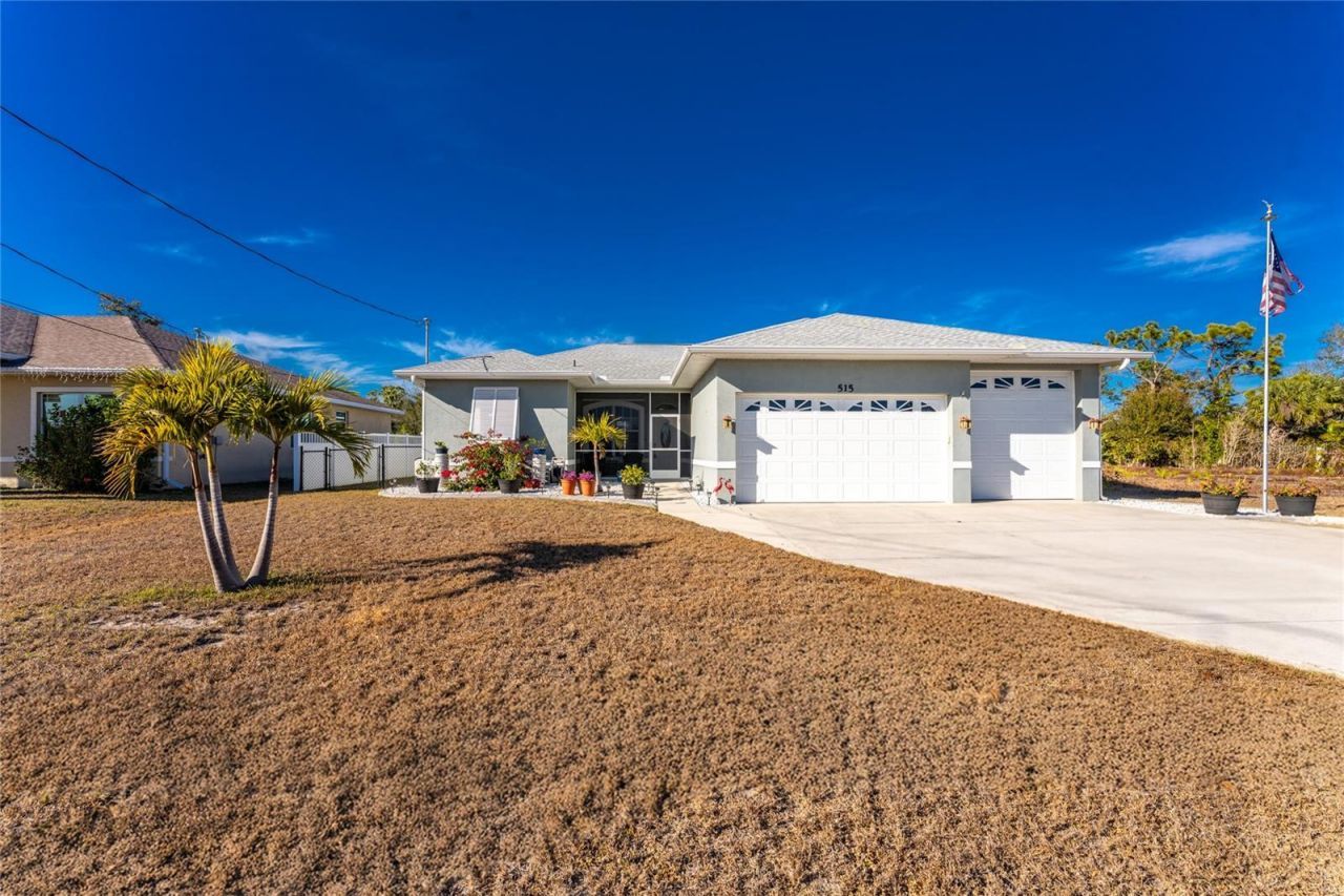 BEST PRICED POOL HOME WITH A 3 CAR GARAGE IN ROTONDA! And it's not your normal 3 car garage - this one can accommodate your boat or RV, eliminating the need to store it elsewhere! This lovely home features 3 bedrooms/2 baths and a CAGED HEATED SALTWATER POOL, set on an oversized lot in the deed restricted GOLFING community of Rotonda West! Upon arriving, you'll enter through the screened front porch, a perfect place for your morning coffee. The very open floor plan seamlessly flows through the main living area, dinette and kitchen, with volume ceilings throughout. The kitchen has white cabinetry w/undermount lighting, offset with pretty granite countertops and backsplash, reverse osmosis filter system, a large closet pantry, and a breakfast bar long enough for multiple bar stools. Appliances include: French door refrigerator, built in microwave, dishwasher, and smooth top range - all LG. The primary bedroom is big enough for a king size bedroom set, has a walk in closet with built ins already installed, and has sliding glass doors opening onto the lanai. The primary bath features a granite topped vanity w/double basins and a Roman shower. Bedrooms #2 and #3 both have WALK IN closets, as well as ceiling fans, and Bedroom #3 has another set of sliding glass doors opening on to the lanai. The guest bath has a combo tub/shower, linen closet and also serves as the pool bath. Inside laundry room has both upper and lower cabinetry, a built in utility tub, and a pedestal LG front load washer and dryer. Tiled flooring throughout for easy maintenance! The three car garage has built in suspended storage, tankless water heater, and two overhead garage door openers. The 3rd bay measures 11 x 30, and the 10' overhead door allows access for your RV/boat. The ELECTRIC HEATED saltwater PEBBLETEC POOL, along with the outside shower, provides the perfect place to enjoy a sunshine-y Florida day, just floating around or showering off before you go inside. The sunshades on the lanai offer respite from direct sun. The fenced rear yard will keep Fido or the kids/grandkids safe and secure, and the mature mango tree will supply you with fresh fruit! The roof was replaced in 2023 and the AC system in 2018. A combination of accordion and roll down hurricane shutters provide peace of mind, plus it's in an X flood zone, so your lender will not require flood insurance! This home is located in Rotonda West, with a low annual HOA fee of only $190/yr! Numerous golf courses, several area beaches, world class fishing, independently owned restaurants, and so much more are just a few minutes away! Call today for a private IN PERSON OR VIRTUAL showing on this immaculate home!