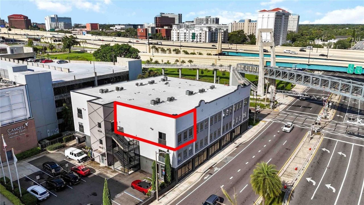 Discover a rare blend of history and modern flair in this striking one-bedroom corner loft, set inside one of Downtown Orlando's most iconic buildings - the former China Glass Warehouse. Originally built in 1930 and converted into lofts in the early 2000s, this residence combines industrial character with artistic modern design. Step inside to find soaring ceilings, exposed brick, heavy timber trusses, and solid steel beams, along with three oversized windows and a double sliding glass door offering a panoramic view of Highway 50 - a feature unique to this corner unit. The sliding door is reinforced with a steel safety grid for added peace of mind. Inside, you'll find bright Mid-Century Modern styling with a retro diner-style eating area, a touch of Contemporary flair, and standout details like an Art Nouveau chandelier and a 15-foot hand-painted mural along the north wall. The flexible lower level offers open living space ideal for entertaining, creating, or relaxing, while the custom metal spiral staircase leads to a lofted primary area and a private den or office. Enjoy secured garage parking (assigned), extra storage, and guest passes, along with the peace of mind that this building has never lost power during a hurricane in over 20 years. For just $65/month (optional), residents also gain access to Camden's amenities-including a private pool, patio with gas grills, and stylish lounge spaces. If you're looking for a distinctive loft that combines industrial roots with modern artistry-and puts you in the heart of Downtown Orlando-this one delivers. Opportunities like this don't come often.