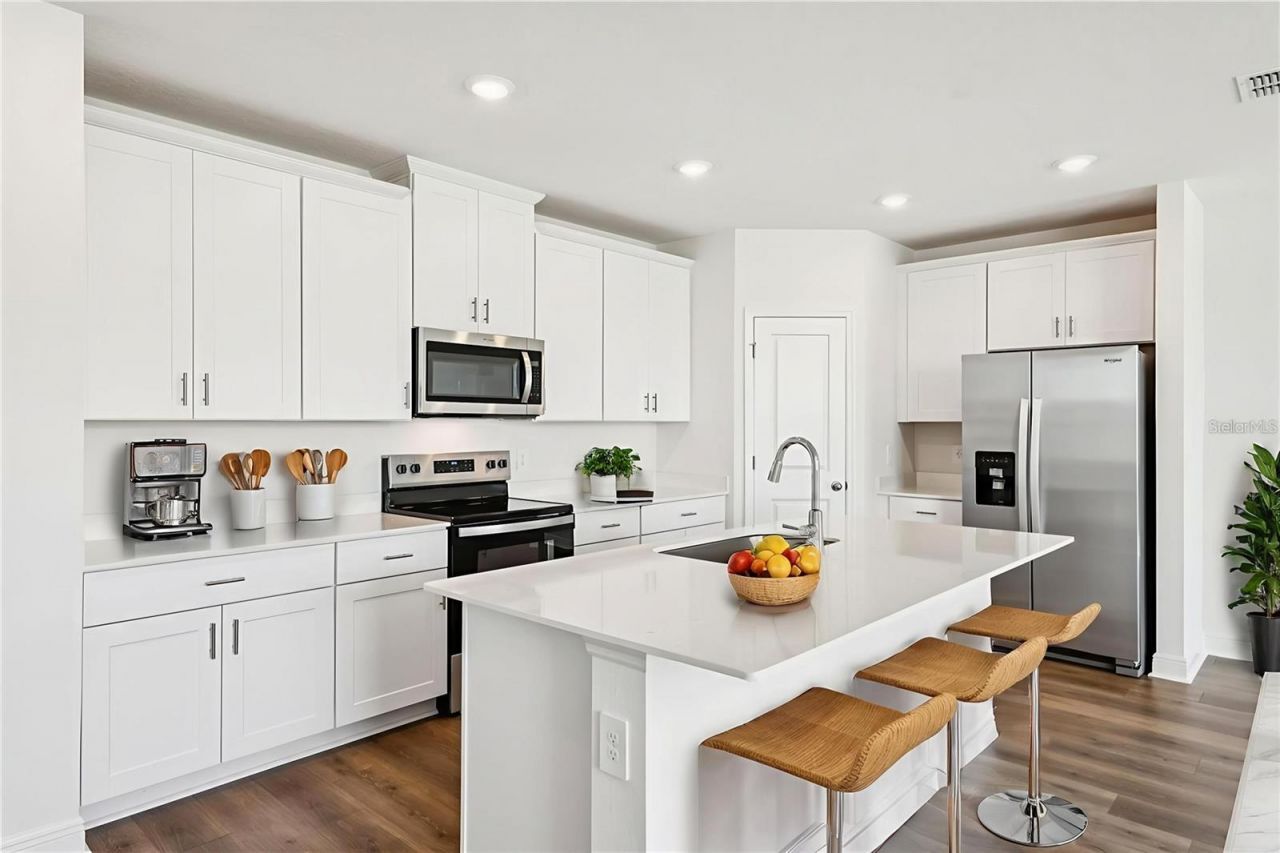 One or more photo(s) has been virtually staged. Property Highlights 1,840 sq ft 4 Bedrooms 2 Bathrooms 2-Car Garage White shaker cabinets with stylish crown molding Quartz countertops in kitchen and bathrooms Laminate flooring in all living areas; tile in the bathrooms and laundry; carpeted bedrooms Stainless steel kitchen appliances included: refrigerator, range, microwave, dishwasher Washer, dryer, and blinds included for turnkey convenienceOpen-Concept LivingEnjoy seamless entertaining with a kitchen island featuring counter-height bar seating, open to the dining area and spacious family room. The kitchen sink overlooks the backyard and living space, keeping you connected while hosting or relaxing.Energy Star Certified ComfortBuilt for healthier living, this home features: Spray foam insulation for quieter interiors and lower energy bills Fresh air intake system to reduce allergens and improve indoor air qualityCommunity AmenitiesThe Reserve at Hammock Oaks offers resort-style living with: Community pool Pickleball courts Playground Open green spaces for recreation and relaxation Golf Cart Friendly communityPrime LocationLocated in Lady Lake, FL-just 1 mile from The Villages-this home offers easy access to shopping, dining, golf, and medical facilities while enjoying the tranquility of a master-planned neighborhood.